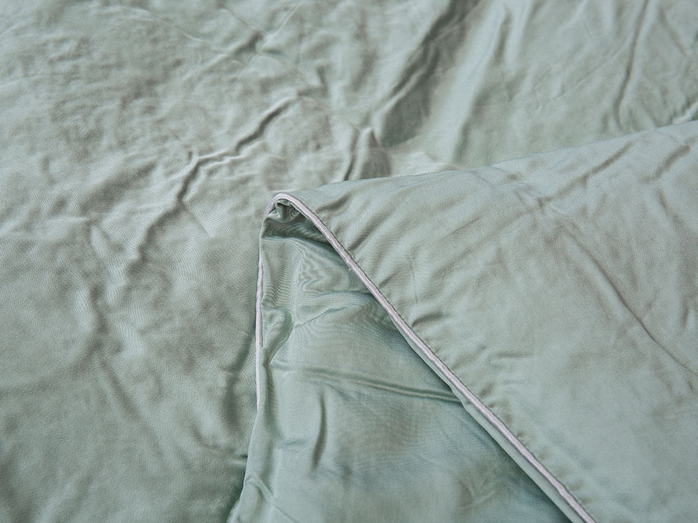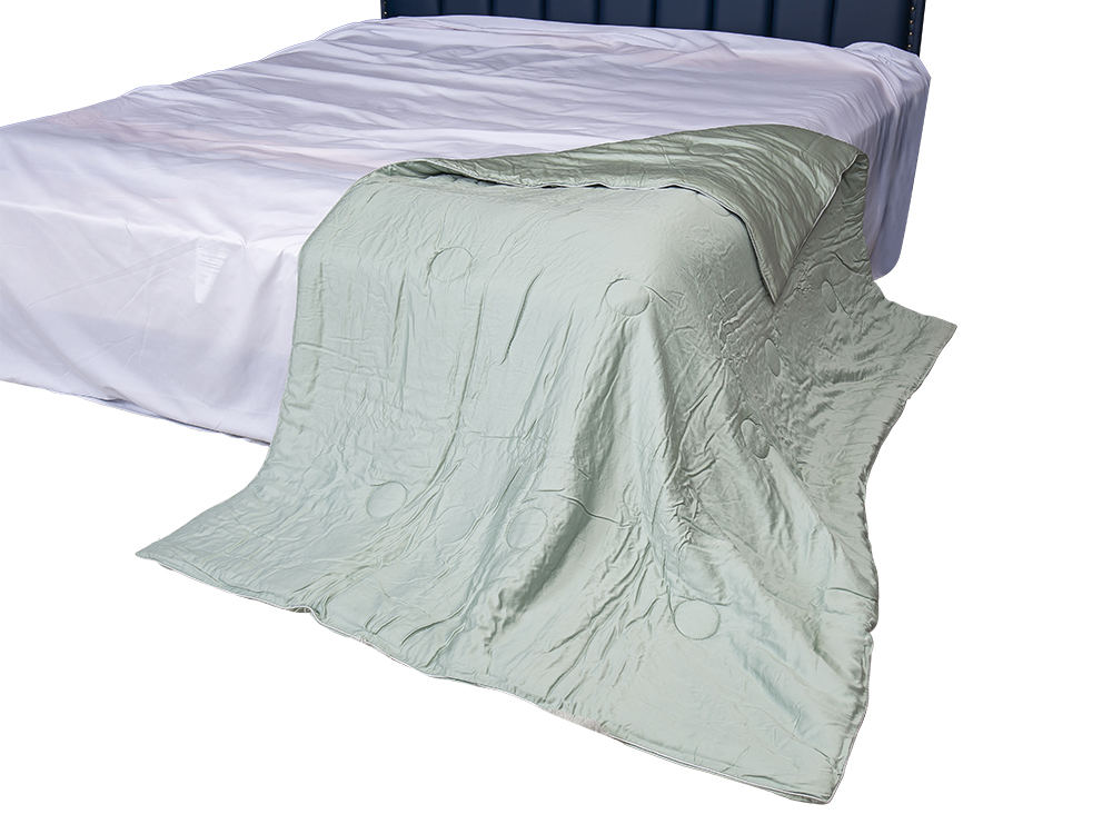 Kyltyget är uppfriskande och andas och känns sval vid beröring. Det är hudvänligt och mjukt totalt sett, och den högkvalitativa fyllningen gör att det känns ännu mjukare. Produkten är lämplig för sommaren, orsakar inte svett, har en cirkulerande ventilations- och fuktavlägsningsfunktion och är tvättbar maskin. Det är en must-ha-textilprodukt i varmt väder.
