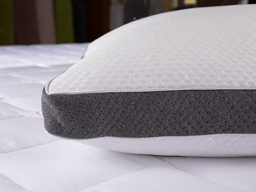 Unikt stickat jacquard -tyg, slät och bekväm struktur. Vitt tyg matchas med högkvalitativt grått tyg, hela kudden är full av designkänsla. Bekväm och full fyllning ger dig en avslappnad och bekväm sömn.