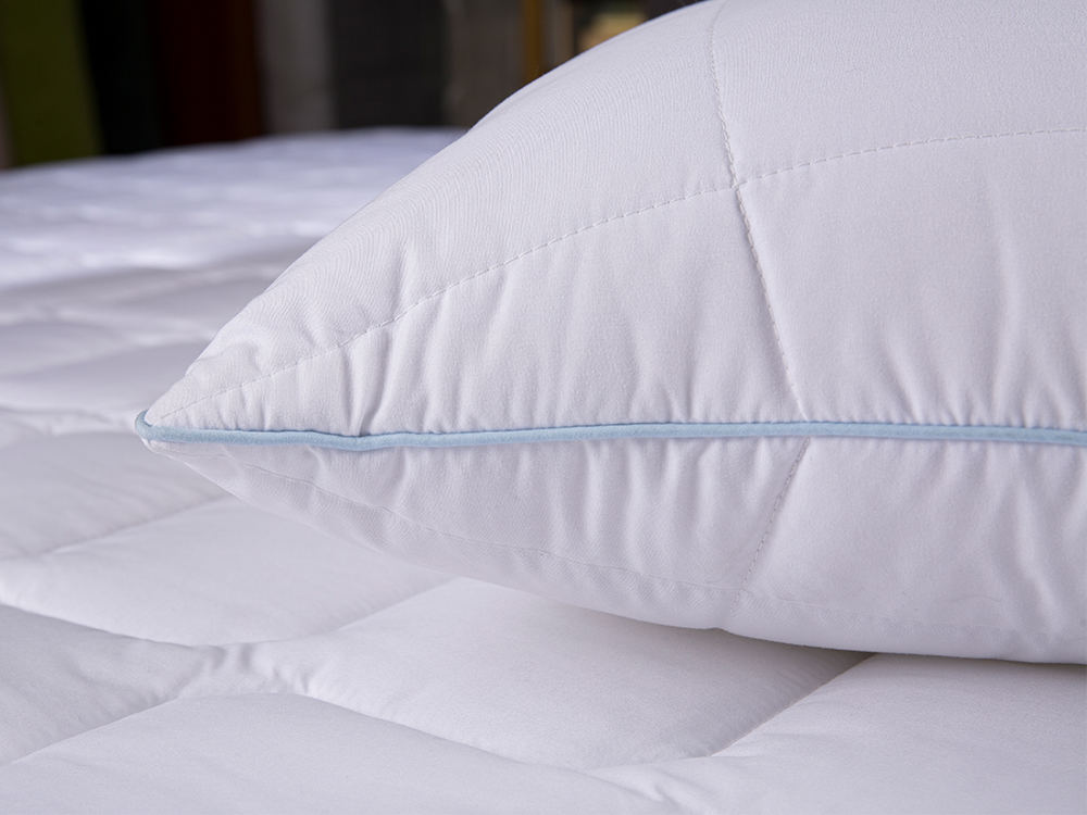 Det vackra quiltade mönstret med ljusblå rörledningar förbättrar den övergripande skönheten i denna kudde. Oavsett om du är en sidosam, rygg sovhytt eller mage sovhytt, kan denna kudde prövas.